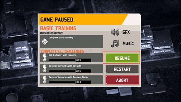 1、首先得进入游戏,之后点击【resume】按钮,就能直接开始正式游戏了。
