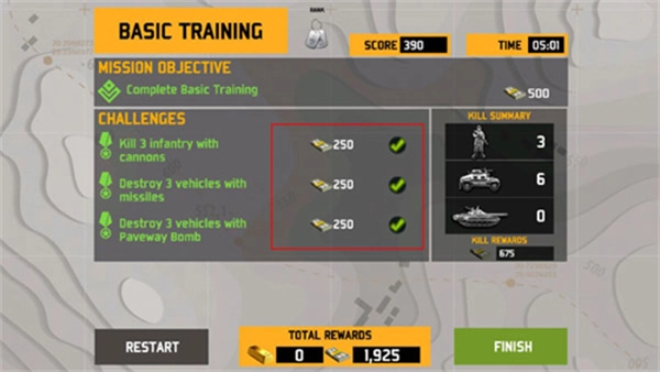 每项任务完成后都能得到金币和金块奖励,这些资源对机库升级系统来说十分关键。玩家既能更换更先进的无人机型号,也可以对枪械炮弹展开全方位升级来增强威力。战机的各项性能参数都能进行调整优化,借助针对性的强化,在执行任务时会呈现出明显的效果。