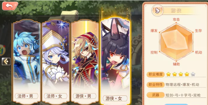灵活的身手、闪电般的速度与令人艳羡的运气,共同塑造了极具特色的职业——游侠。这个职业没有战士烈火焚城般的猛烈攻击,没有盾卫铁壁难摧的坚实防御,也没有法师毁天灭地的强大魔法,却拥有让所有职业都羡慕不已的幸运值。他们既能手持拳套、匕首这类近战武器,化身潜行刺杀的刺客;也能凭借弓与弩这类远程兵器,成为百步穿杨的射手;更能依靠多样的生存技能,在岛屿各处探索,成为寻觅珍宝的猎人。