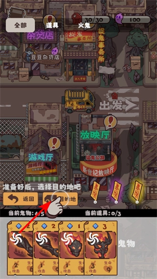 准备好鬼物后,点击目的地按钮就能进入地图选择界面,这可是开启冒险旅程的关键一步哦。