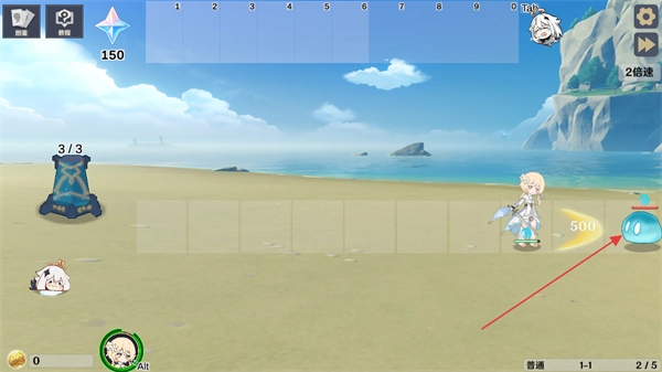 战线上会出现史莱姆军团,你需要操控旅行者移动来发起攻击,以此保护水晶免受攻击。