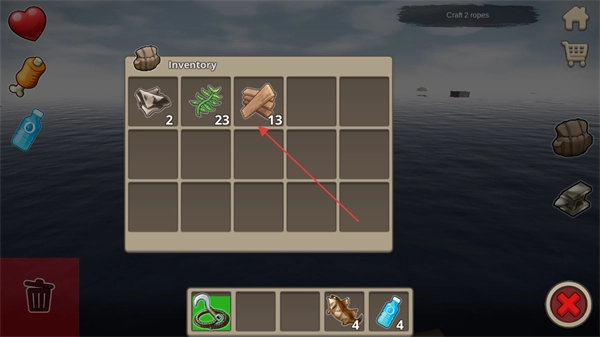 根据Craft2ropes任务要求,需瞄准海上的木板类物资,使用钩子进行钩取。