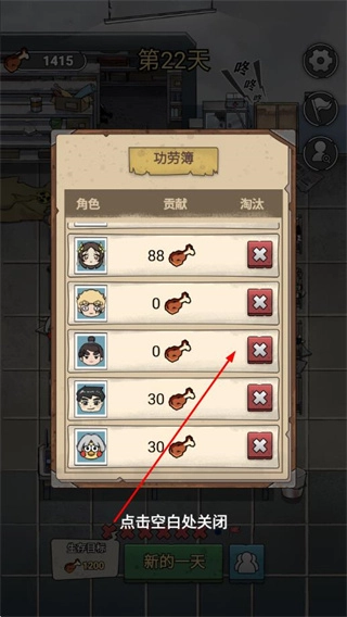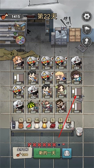 不用手动去收集资源,只要点击“新的一天”就能自动积攒物资,生存进度的推进完全是轻量化的,策略性的操作只聚焦在“角色淘汰和招募”这个环节,很符合休闲玩家的操作习惯。