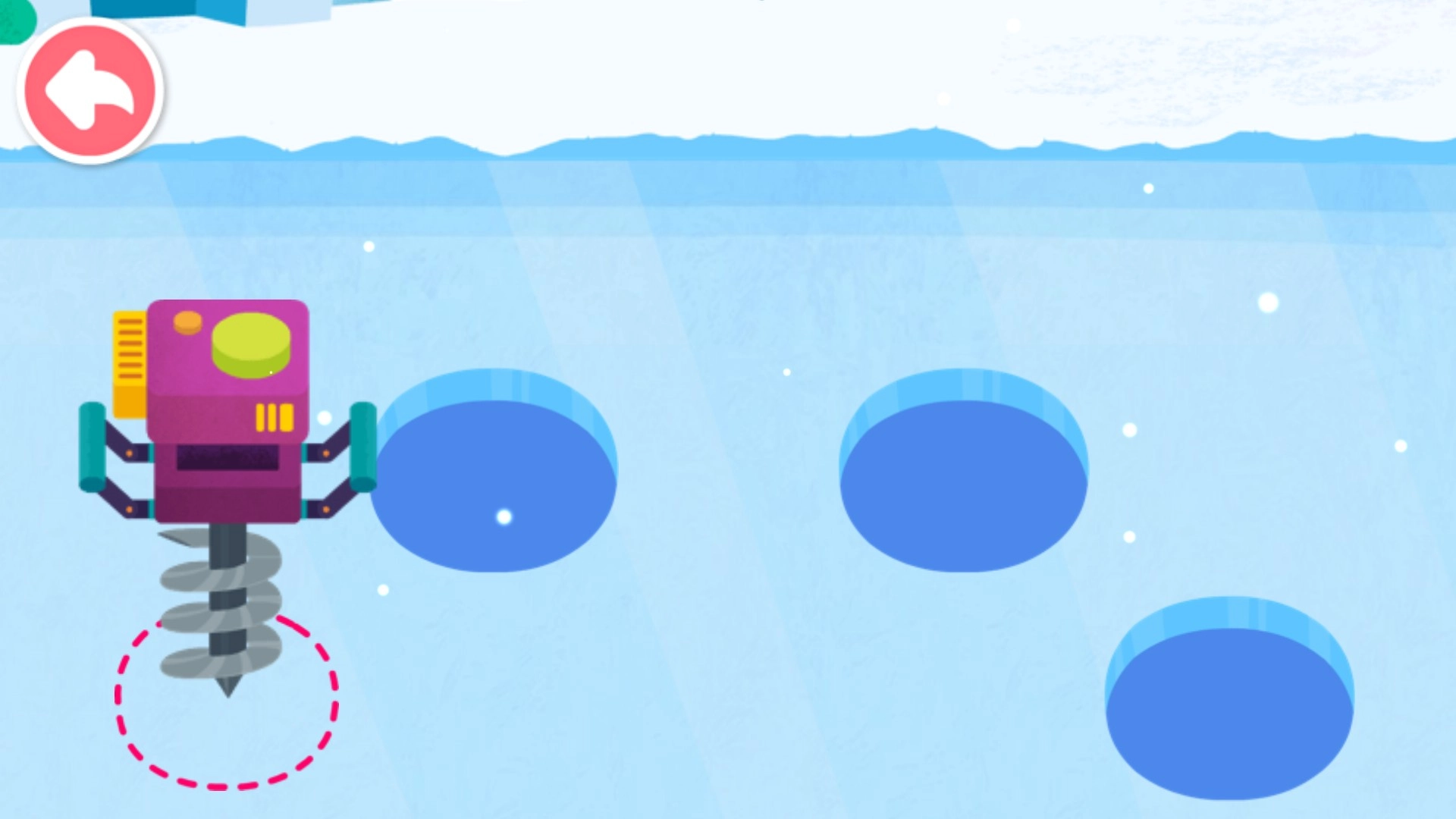 5、运用工具给冰面打洞。