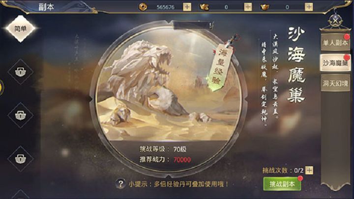 当玩家等级达到73级时,将解锁经验副本“沙海魔巢”。进入该副本后,等级提升速度会大幅加快,首日轻松突破百级毫无压力。每日拥有2次免费挑战机会,一定要记得把次数用完哦!