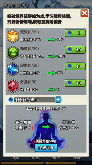3、接着点击突破境界按钮就行,不过突破境界需要角色达到对应的规定等级才能进行。