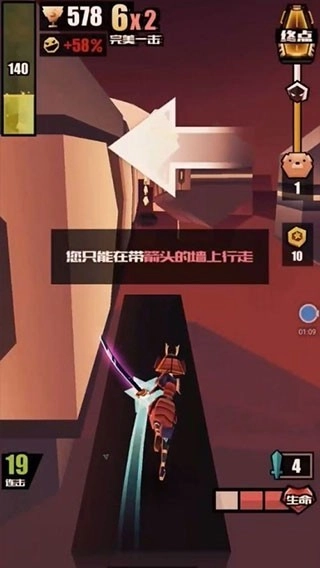 5、哎,前面没路了呀,这时候可以左右滑动,在有箭头的墙上行走,哈哈,是不是有种飞檐走壁的感觉呢?
