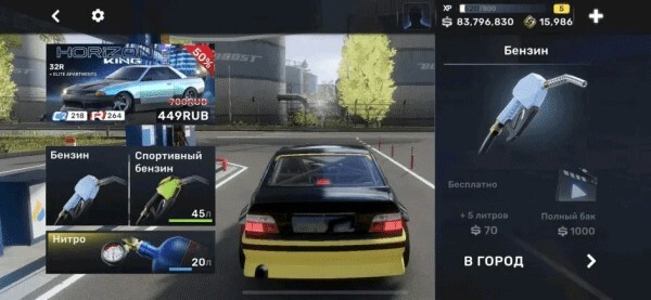 不过,大家的油箱都是45升,换哪辆车都一样。蓝色款主要有70和1000两种,总之别买1000的,特别亏(虽说加油速度确实很快……)。加完油后,点击右下角那个向外的按钮,就能离开加油页面,进入驾驶模式了。