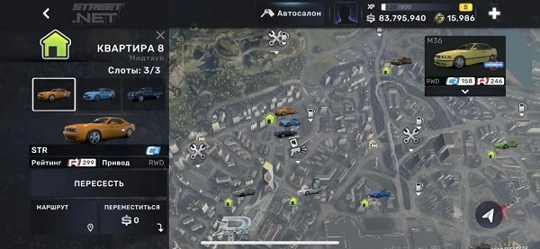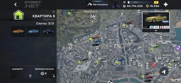 如果地图上出现数字0,就意味着你无需消耗任何积分就能快速传送回去。旁边那个是导航功能,车库是可以进行替换操作的,要是点击车辆的话,就会显示相关信息。