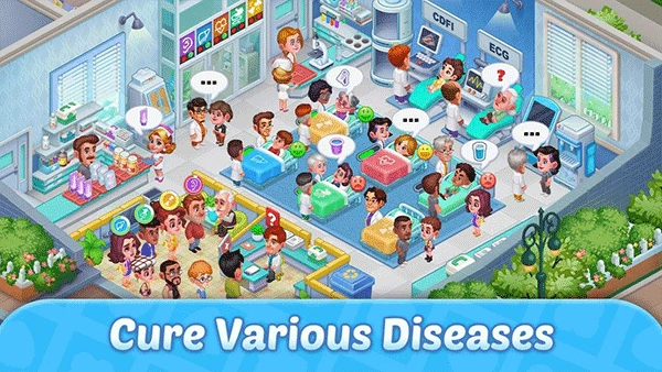 疯狂医院中文版属于模拟经营类游戏,玩家需从零起步,完成购买土地、建造医院设施、招募医护人员以及购置医疗设备等一系列操作。同时,还得负责管理医院的各项事务,要合理规划时间与资源,以此保障医院的平稳运转,并提升患者的满意度。