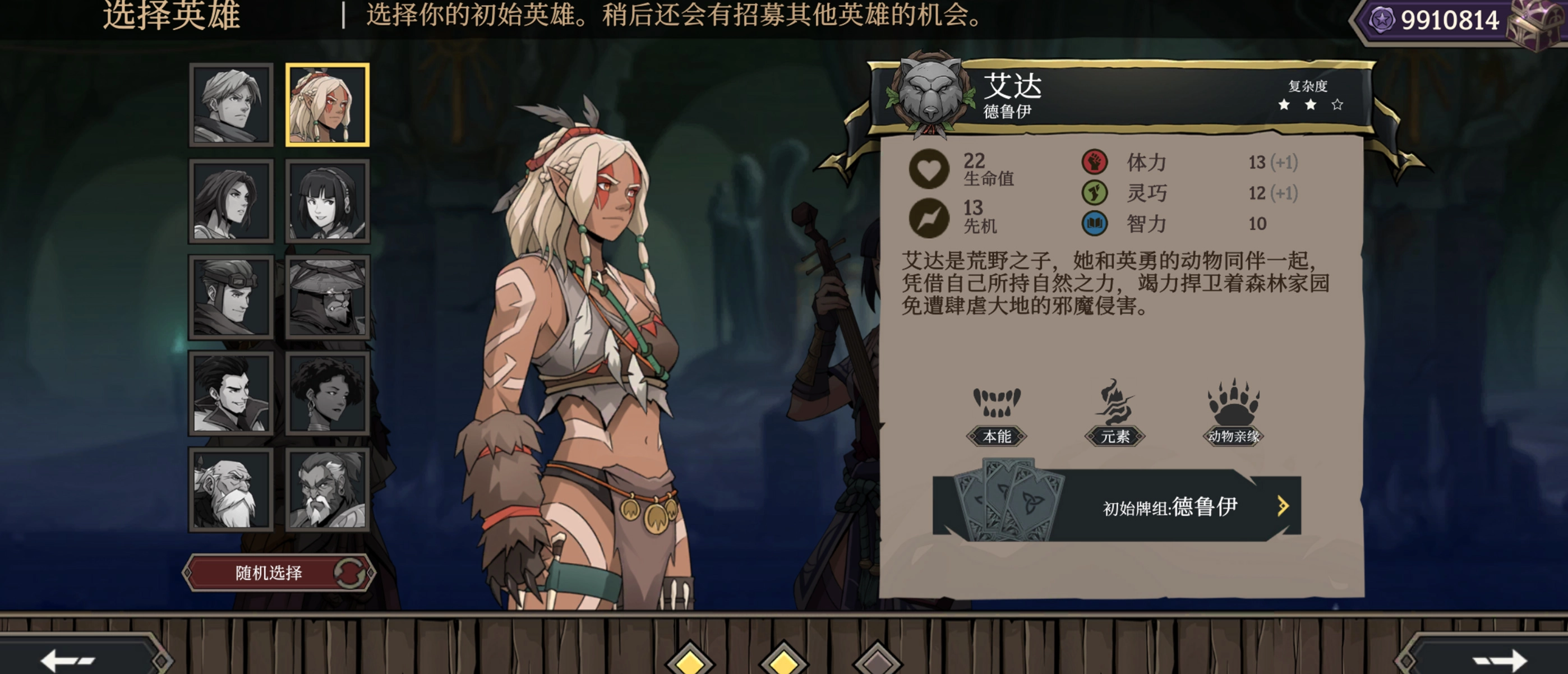 1、新游戏启动后,在选择初始英雄的界面,能够找到已经解锁或获取的角色。