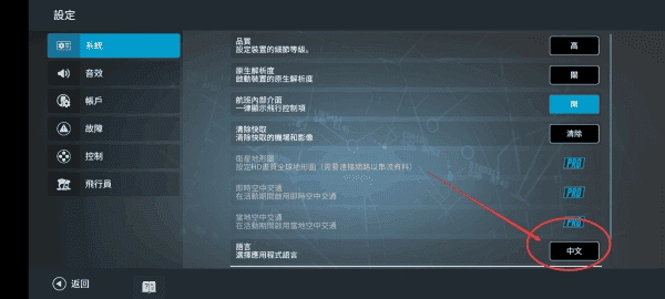 - 自动驾驶系统的LNAV/VNAV功能选项(位于设置界面中)
