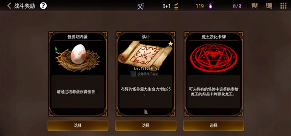 二、每次挑战成功后都会有对应的奖励,但不少玩家在挑选奖励时会纠结选哪个。这里给大家分享一个小技巧:若选项中有装备,且装备星级≥4星,那就优先选装备;要是有怪兽培养蛋,则直接选培养蛋。选蛋时同样看星级,优先选星级高的;如果是道具类奖励,就根据实际情况来决定。