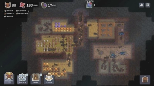 族群运营:核心目标:作为蚁群主宰,玩家需通过孵化蚂蚁、挖掘隧道来壮大势力。食物与空间是生存基础,需派遣工蚁持续搜集落叶、昆虫残骸等资源。