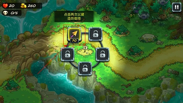 进入关卡后,玩家可点击空地上的棋子来建造防御塔。