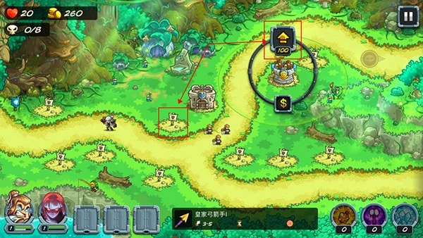 2、点击该位置后,可选择想要建造的防御塔类型。初期防御塔仅有箭塔,后续会随着游戏进度逐步解锁更多类型。