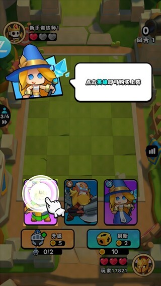 3、利用刷新功能,当连续购买到三位相同的英雄时,就能将其合成并升级为二星。