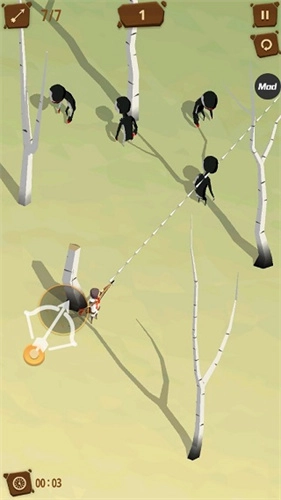 在游戏里,玩家得先触摸中心区域来召唤出弓箭,接着通过反向滑动的方式拉弓,以此完成瞄准操作。