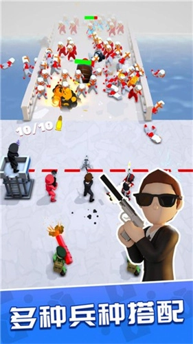 持续挑战关卡,通过合成来招募更多士兵,这样你就能拥有更强大的实力去应对敌人各种各样的攻势。