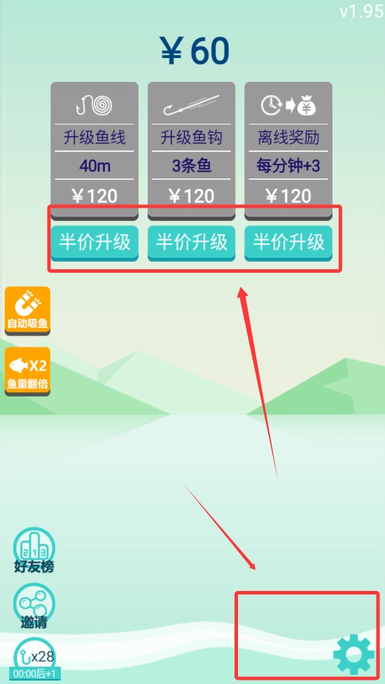 1,可以自行设置所需的信息,点击“半价”选项就能升级鱼钩啦。