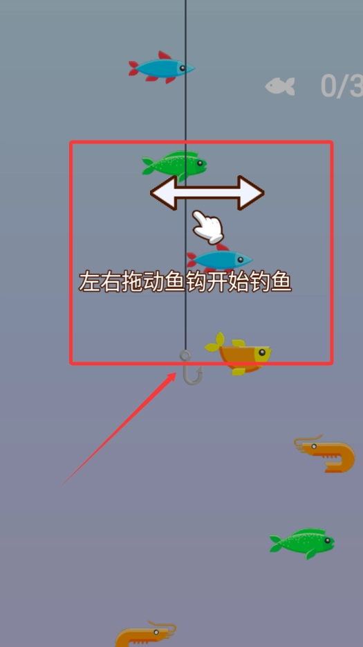2,点击渔夫开始钓鱼,根据画面提示了解玩法,上钩的鱼就能收获了哦。