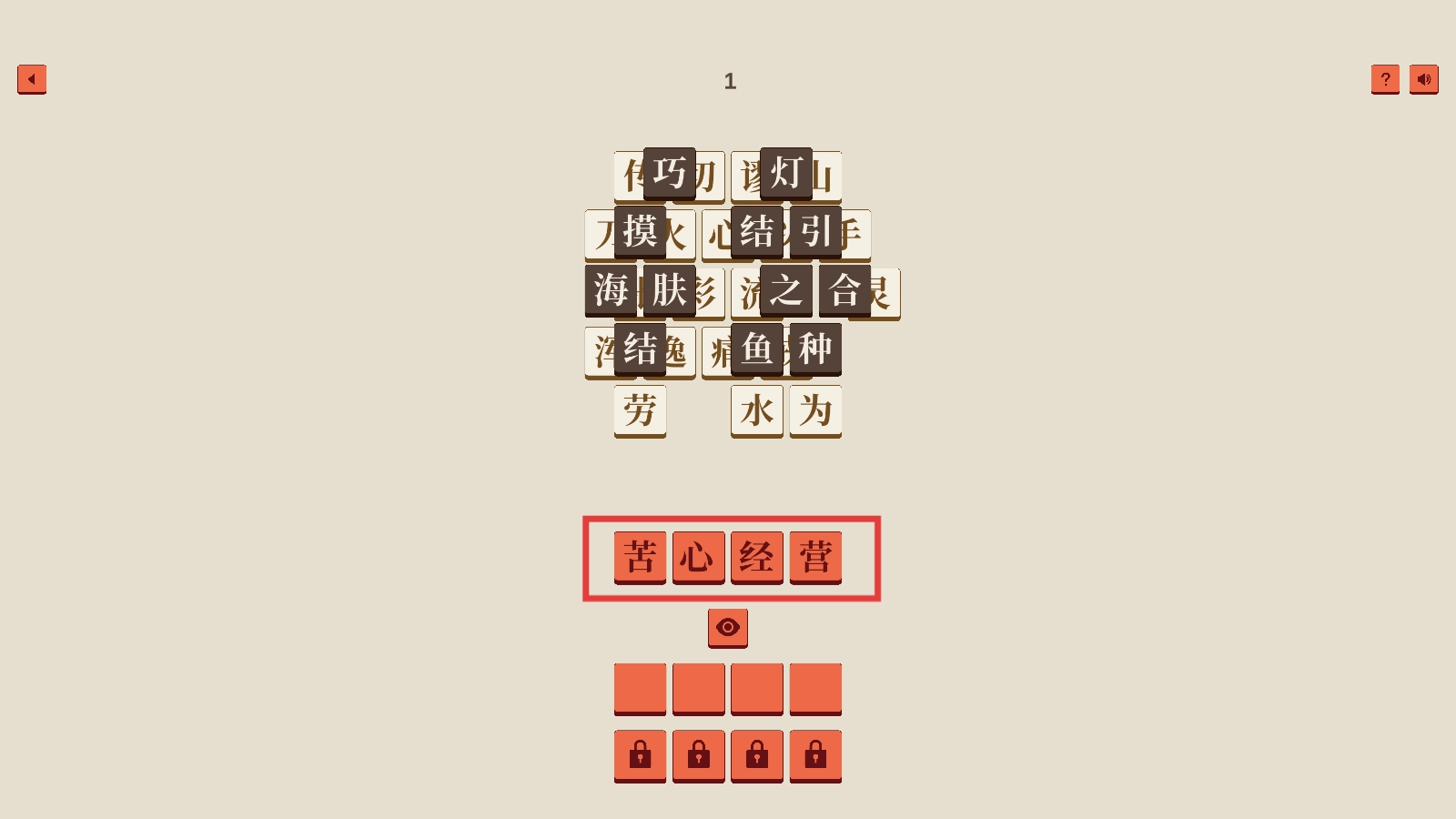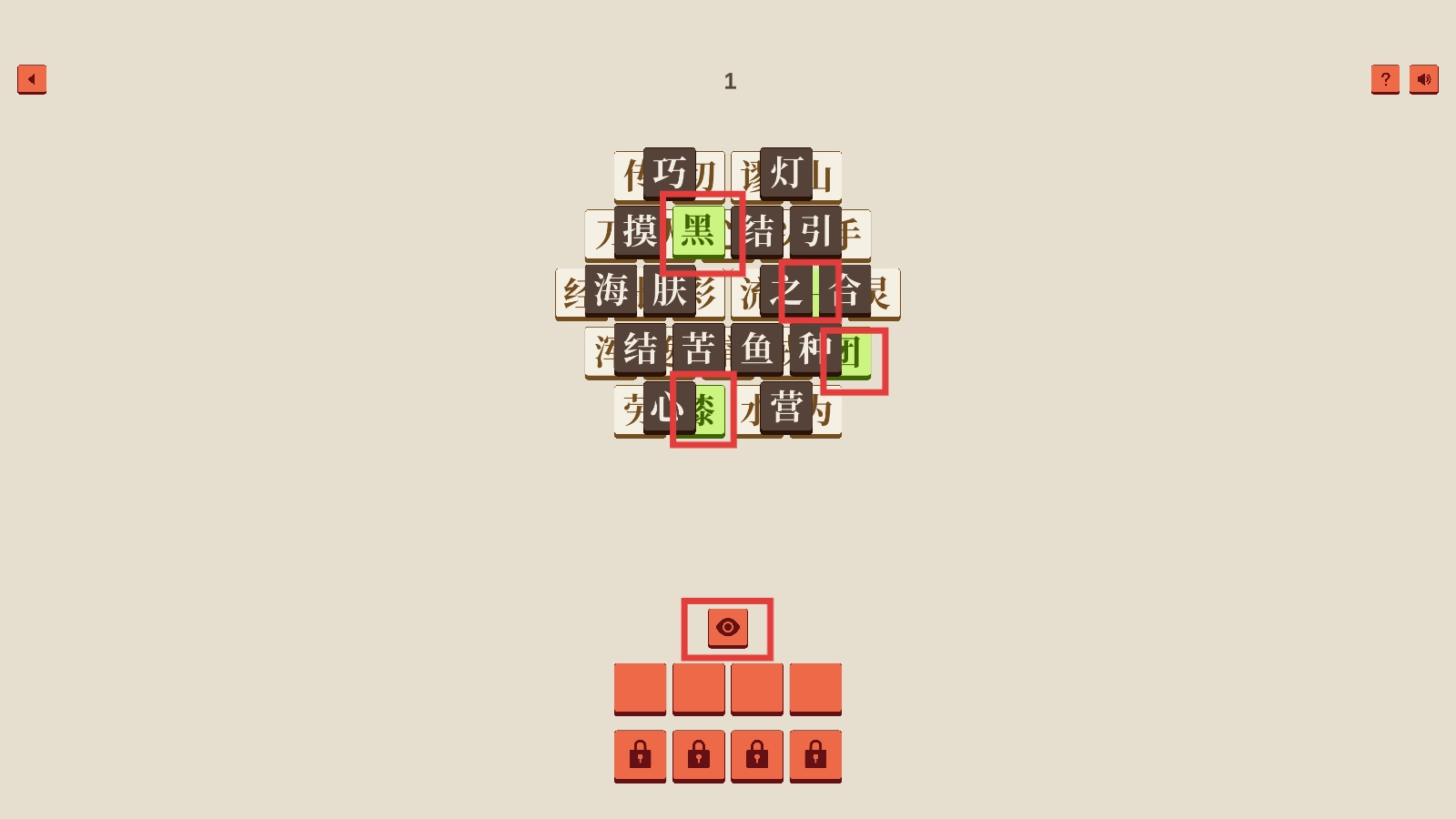 进入关卡后,仔细观察汉字矩阵,点击下方的图标,尝试找出能够组成成语的汉字。