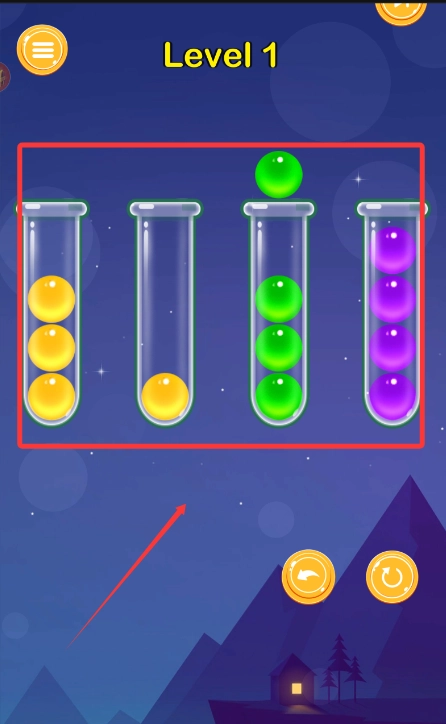 点击相同颜色的球球放在同一个瓶子里。