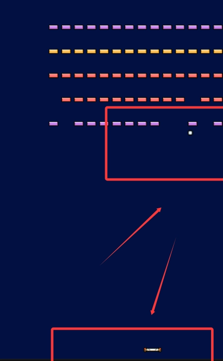 移动下方横线击飞小白球碰撞彩色方块得分。