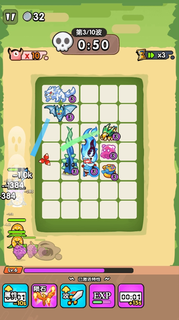 2、游戏里设置了多种类型的精灵,不同类型的精灵之间能产生搭配增益效果,玩家可以自由尝试各种各样的阵容组合,从而快速完成防守任务。