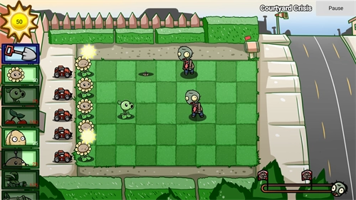 玩法沿用了经典的植物大战僵尸模式,玩家开局有50点阳光,得借助阳光栽种植物来抵御不断袭来的僵尸。