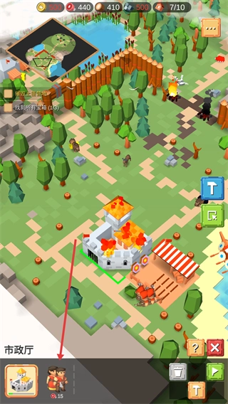 红箭头所指的是【市政厅】,优先解锁这座建筑能够提高营地的管理效率。