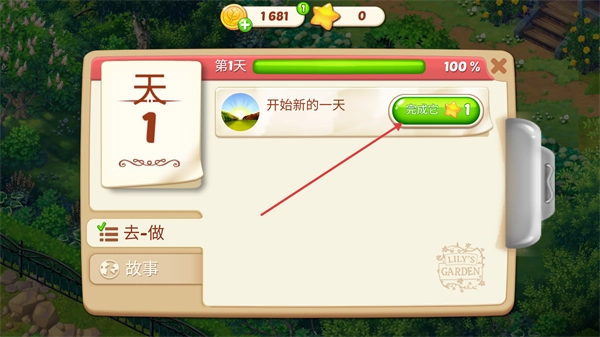 点击【去完成】按钮,完成【开始新的一天】任务,以此结束首日流程。