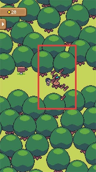 点击目标树木,即可操纵角色砍树,完成获取木材。
