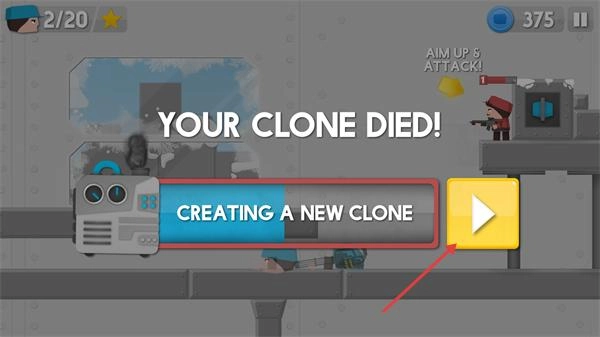 若炮手阵亡,界面会显示“YOURCLONEDIED!”,此时点击黄色按钮便会触发“CREATINGANEWLONE”,从而补充新单位以继续战斗。