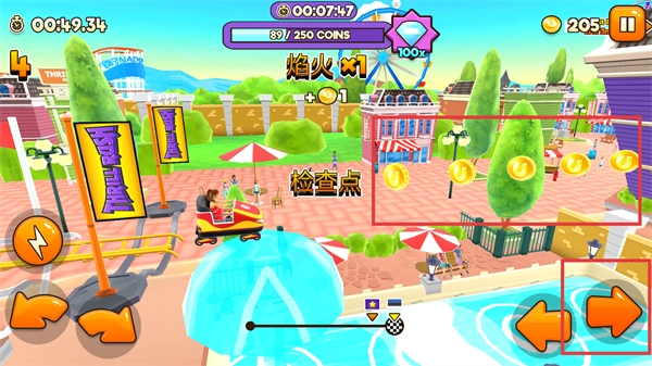 到达【检查点】后领取【金币】,维持驾驶节奏,借助奖励提高得分效率和游戏体验。