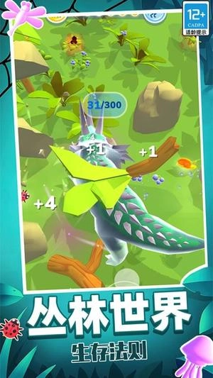 生物进化模拟是一款主打吞噬玩法的休闲游戏。玩家初始化为一条小金鱼,通过持续吞食虾米之类的小型生物积攒能量,进而达成成长与进化。每次进化完成,角色的外形和技能都会有所改变,开启更多挑战与探索的空间。在海洋环境里会遭遇各类天敌,必须巧妙躲避或者抓住时机反击,才能维系生存。当满足特定条件后,还可以踏上陆地,在丛林中开启全新的进化征程。