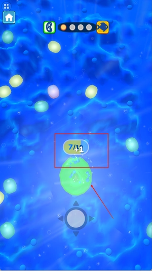 你可以通过操作控制角色在场景中左右移动,当角色靠近体型比自身小的生物时,就会自动将其吞噬,从而获取能让自身成长的能量。