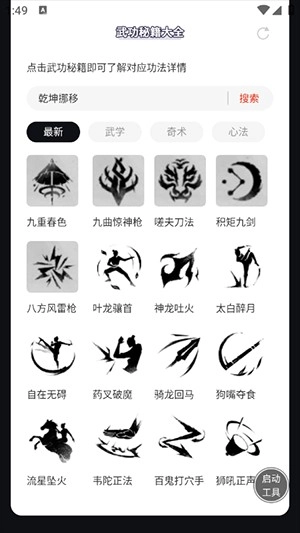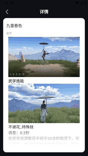 2、玩家可以在这里查看详细的武功介绍