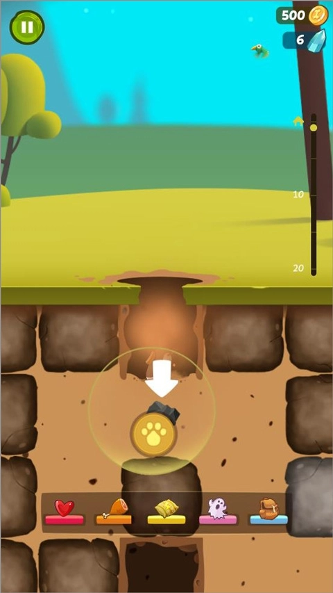 3、玩家操控小狗滑动至指定位置后,向下滑动就能指挥小狗挖掘地下宝藏。