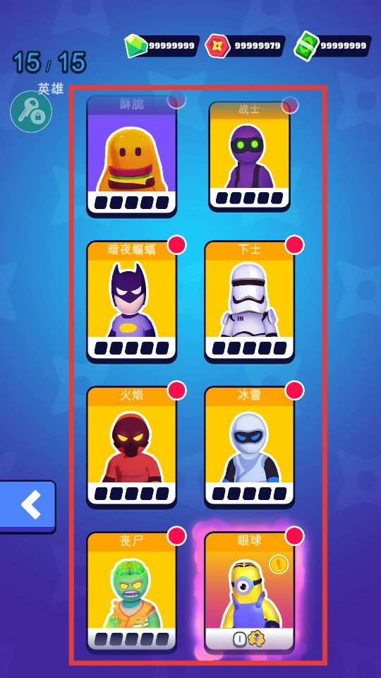 选择红框内已解锁的【酥脆】【战士】【暗夜蝙蝠】等英雄皮肤,切换角色外观后,开始游玩。