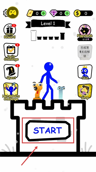 进入游戏主界面后,点击【START】按钮即可开启【Level1】的战斗挑战,以此为后续迎战装备精良的敌人做好充分准备。