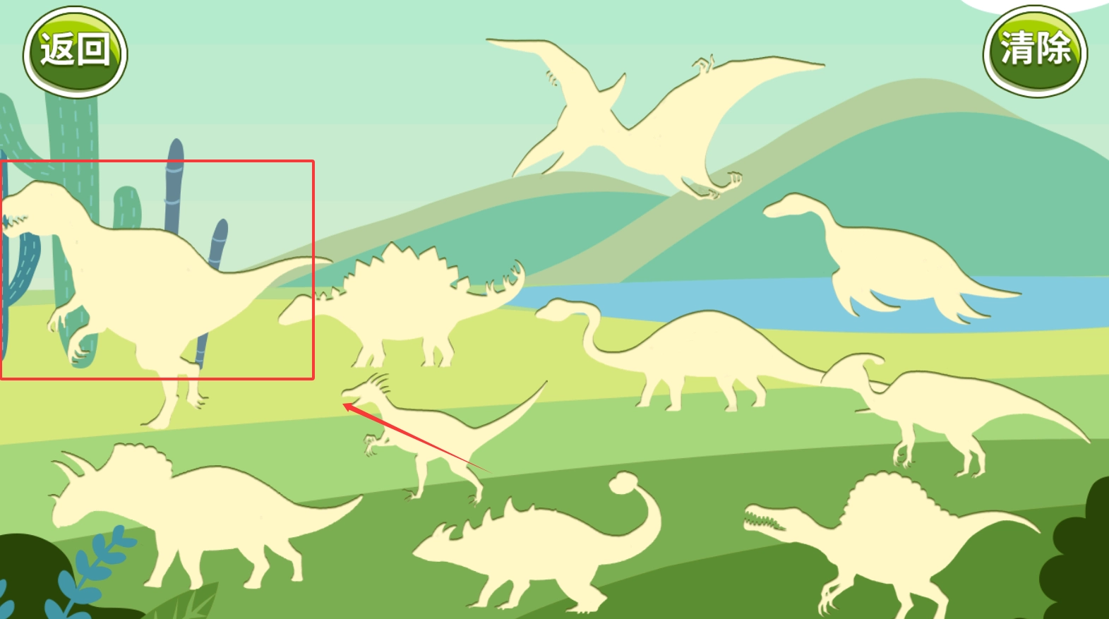 进入后,语音会介绍恐龙的种类,宝宝能通过图片认识各种各样的恐龙。