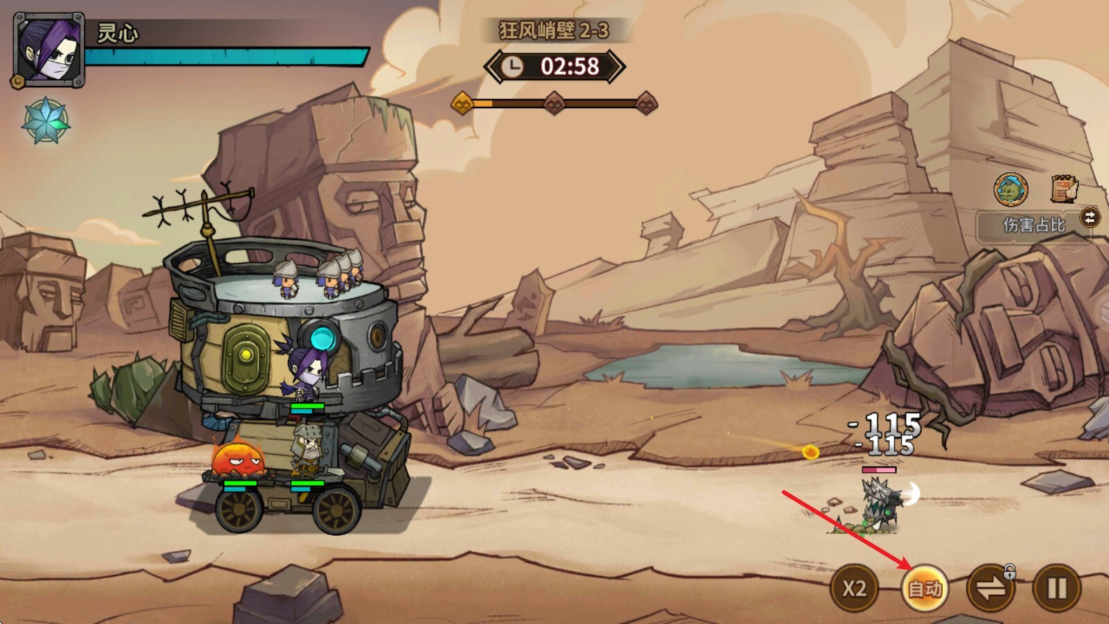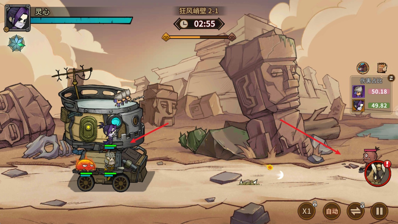 2、战斗打响后,堡垒上的英雄们便会自动发起攻击,同时自身的怒气值也会随之增加。