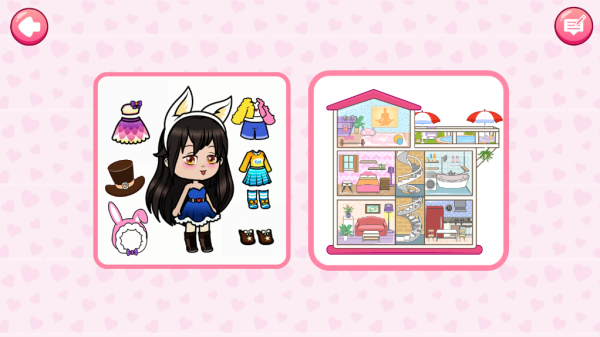 2、可以选择给Chibi娃娃更换装扮,也可以选择装扮小屋,比如选择给娃娃换装
