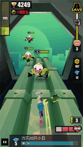 不过连贯动作所带来的快节奏操作,在跑道受限的场景里,很容易让人混淆主次。你可能会发现,跑着跑着就不自觉把注意力放在了打怪上,反而忽略了跑酷本身,结果轻易栽在那些简单的障碍上。所以大家玩的时候可别被怪物分散了精力,还是得留意沿途的障碍物。