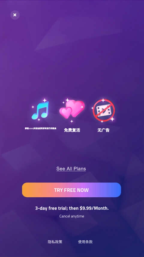 右上角设有“试听全部”的入口,点击进入后,您可以不受次数限制地体验任意未购买的曲目,等您觉得满意了,再决定是否解锁完整版。