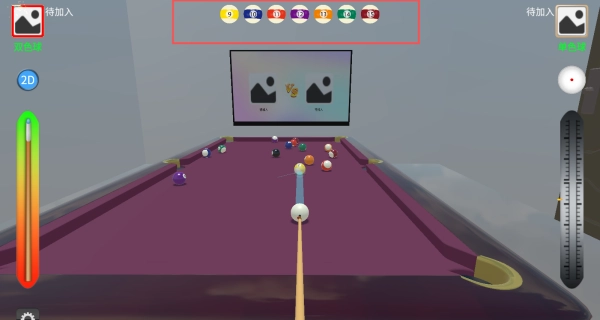 3、击球过程中可通过顶部界面查看尚未进袋的球类,实时掌握赛场局势。