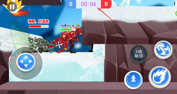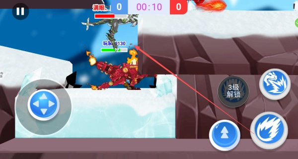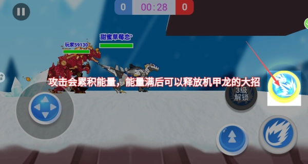 1、通过左侧方向键控制机甲恐龙移动,主动靠近其他机甲角色展开激烈对决。