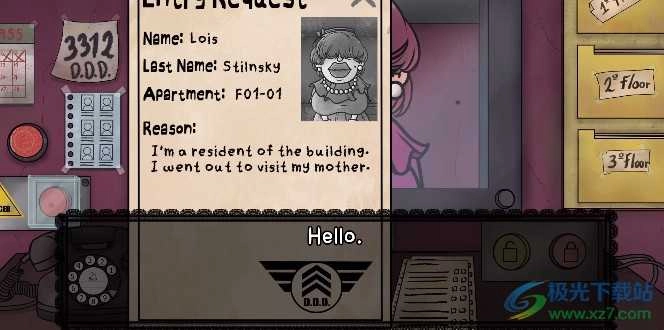 进入游戏后,首位来访者站在铁门外,你需要调取其预留的入住登记照与实时影像进行比对。
