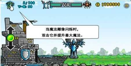 这一关的任务目标是摧毁敌方的主堡,要是己方堡垒被敌人攻破了,任务就算失败。刚开始的时候资源是比较有限的,所以得合理地分配魔法值,别盲目地去堆叠低阶单位。